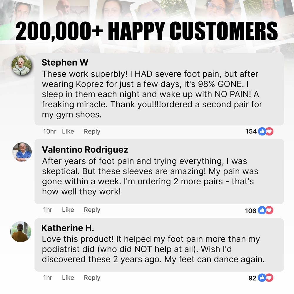 I finally replaced my old compression socks, which had stretched out and started causing more discomfort than relief. I can wear the Koprez sleeve during work, exercise, and even while relaxing at home. I didn't truly understand what Biolateral Compression meant—until I experienced it. This sleeve adjusts seamlessly to my movements, keeping my foot supported no matter what I'm doing. I absolutely love it and best of all, I no longer experience that uncomfortable stiffness when I first stand up! I’m so glad I bought 3 pairs of these sleeves.