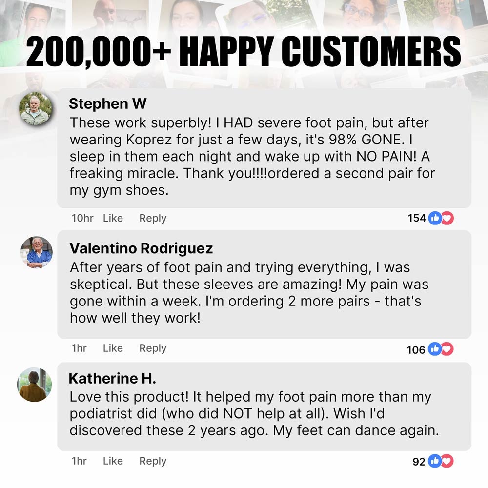 I've been looking for over a year for a foot sleeve that can effectively help with my heel discomfort until I discovered Koprez. Unlike other products I've tried, this sleeve provides exceptional support for my foot, keeping it comfortable throughout the day. While the improvement wasn't immediate, after about two weeks, I noticed my morning foot stiffness had significantly decreased. Now, I can't stop recommending it to my friends.